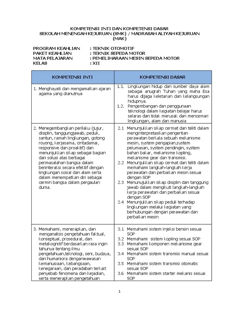 Kompetensi inti dan kompetensi dasar memahami dasar perawatan sistem pengapian dan perawatan berkala sistem pengapian. Ferry mezawan.p,st pilihan ganda 1. Buku teks bahan ajar siswa smk "pemeliharaan mesin sepeda motor"merupakan buku ke 1 dari 4 buku yang mendukung pencapaian kompetensi dalam paket . Siklus mesin untuk mesin 4 langkah terdiri dari : Materi pemeliharaan mesin sepeda motor memberikan bekal awal dalam memahami kompetensi teknik sepeda motor. Materi ini disampaikan pada kelas xi semester 1. Yang bertungsi sebagai penutup lubang silinder pada blok silinder . Disklaimer (disclaimer) penerbit tidak menjamin kebenaran dan keakuratan isi/informasi yang tertulis di dalam buku tek ini. Soal pemeliharaan mesin sepeda motor kelas xii guru mapel : Model cipp (context, input, process, product) di smk. Pemeliharaan mesin sepeda motor kelas xi dengan. Pemeliharaan mesin sepeda motor e. 20 soal + jawaban pemeliharaan mesin sepeda motor bab kepala silinder dan blok mesin.