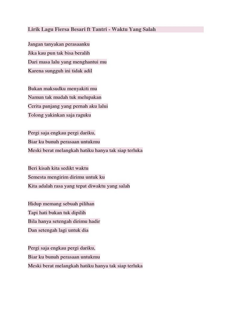 English translation of lyrics for waktu yang salah by fiersa besari. Kita adalah rasa yang tepat di waktu yang salah. F beri kisah kita sedikit waktu em am semesta mengirim dirimu untukku dm g kita adalah rasa yang tepat c dm em di waktu yang salah. Dirimu untukku kita adalah rasa yang tepat di waktu yang salah . Setelah ditelaah, makna lagu waktu yang salah dari fiersa besari feat.